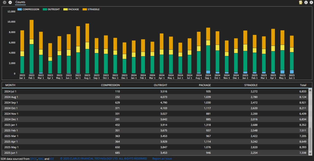 - Compressions reached a new record of $85 billion in June 2025. We expect to blog soon about the swaption compressions volumes from rates IM optimization runs.
